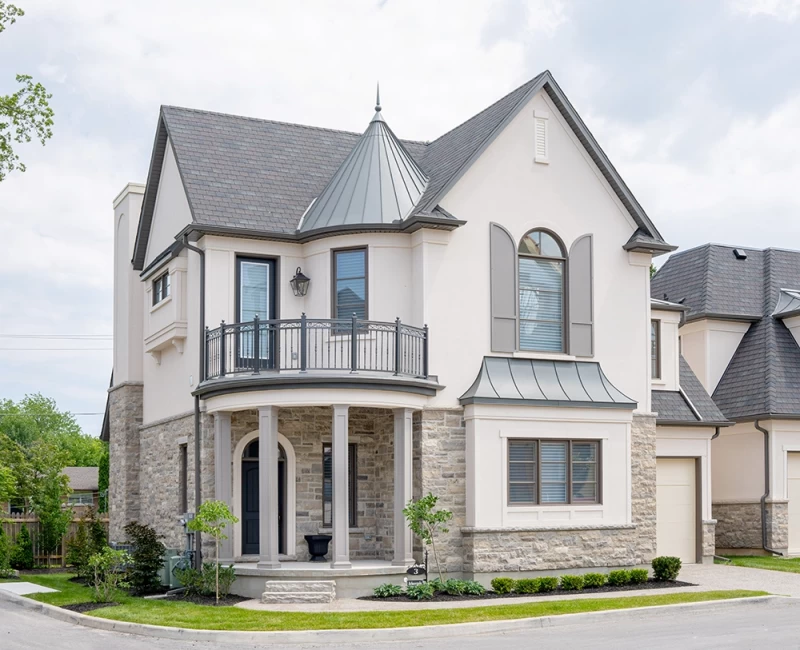 Custom Homes with luxury finishes and master craftsmanship. Elegant French exterior highlights. Walk through the stately entrance and enjoy the captivating architectural features.